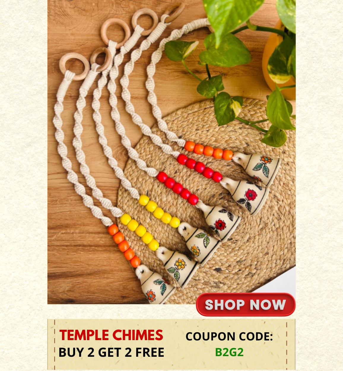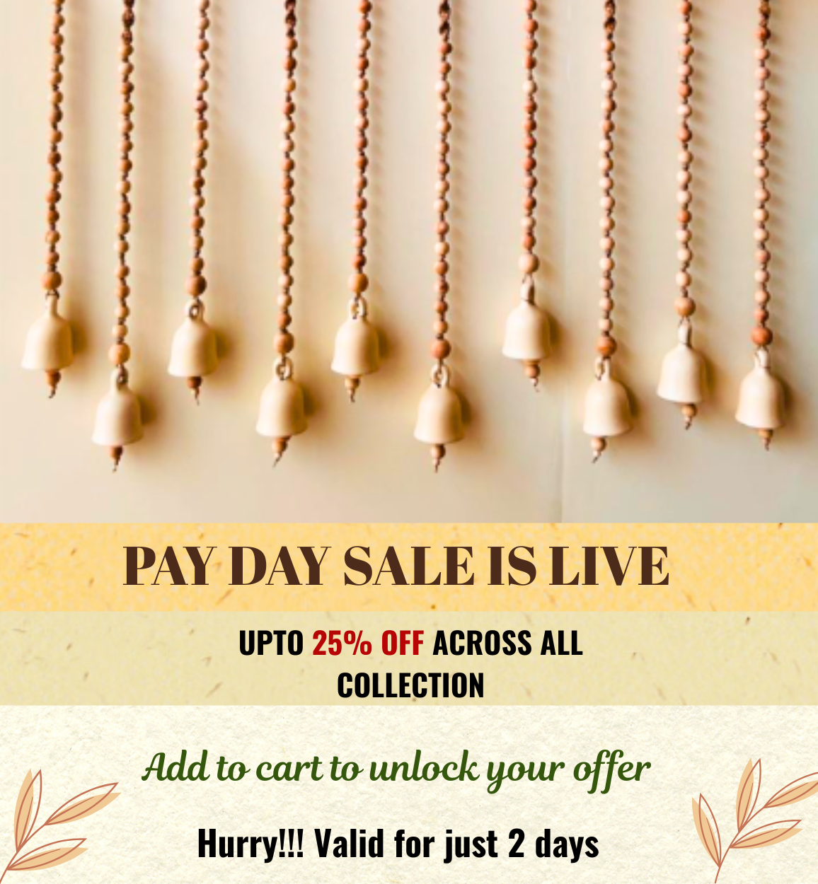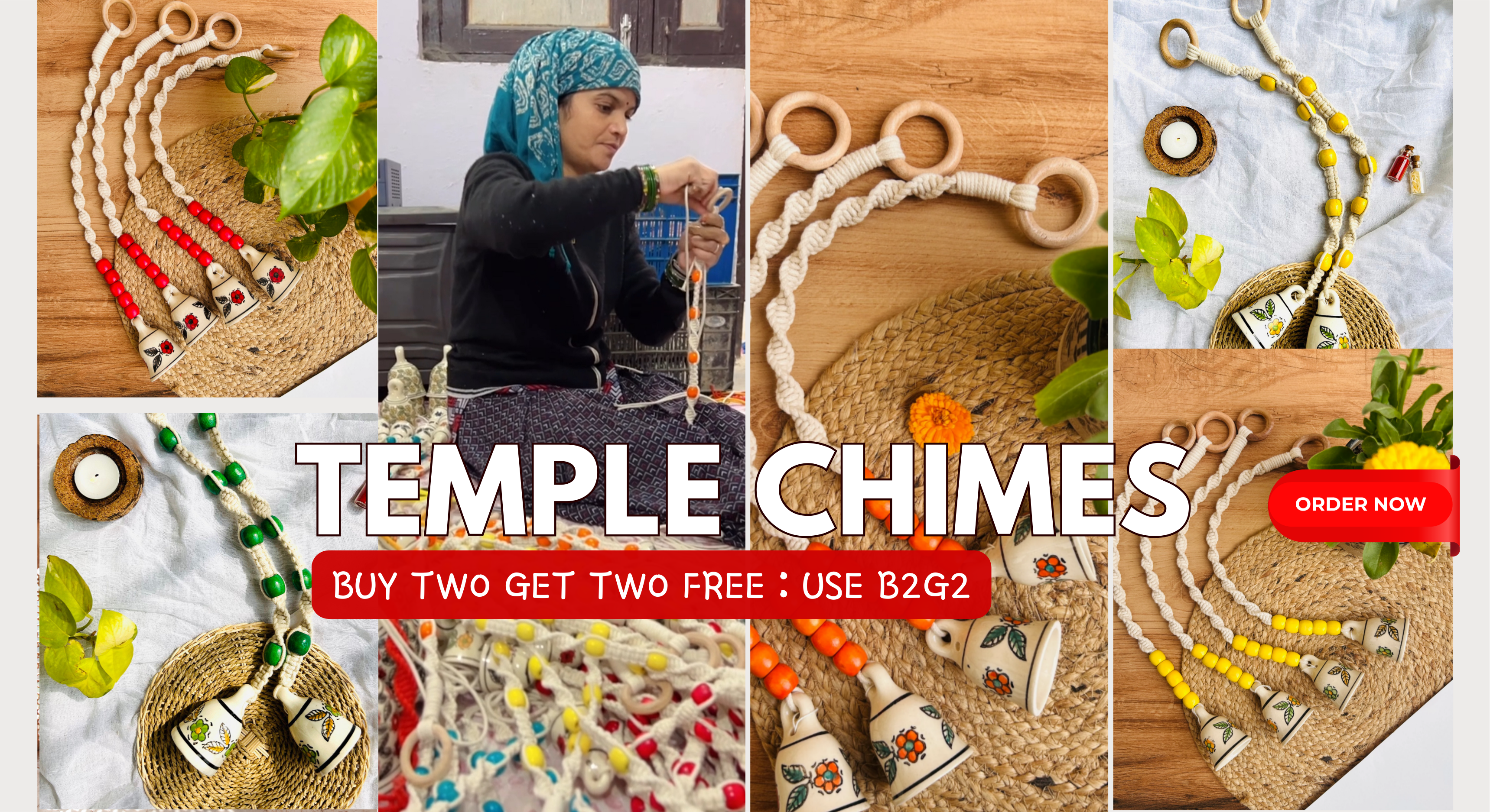 Handcrafted Wall Decor Combo – Ceramic Bells & Wooden Wall Hanging Create a warm, welcoming corner in your home with this thoughtfully curated handmade wall décor set, designed to blend...