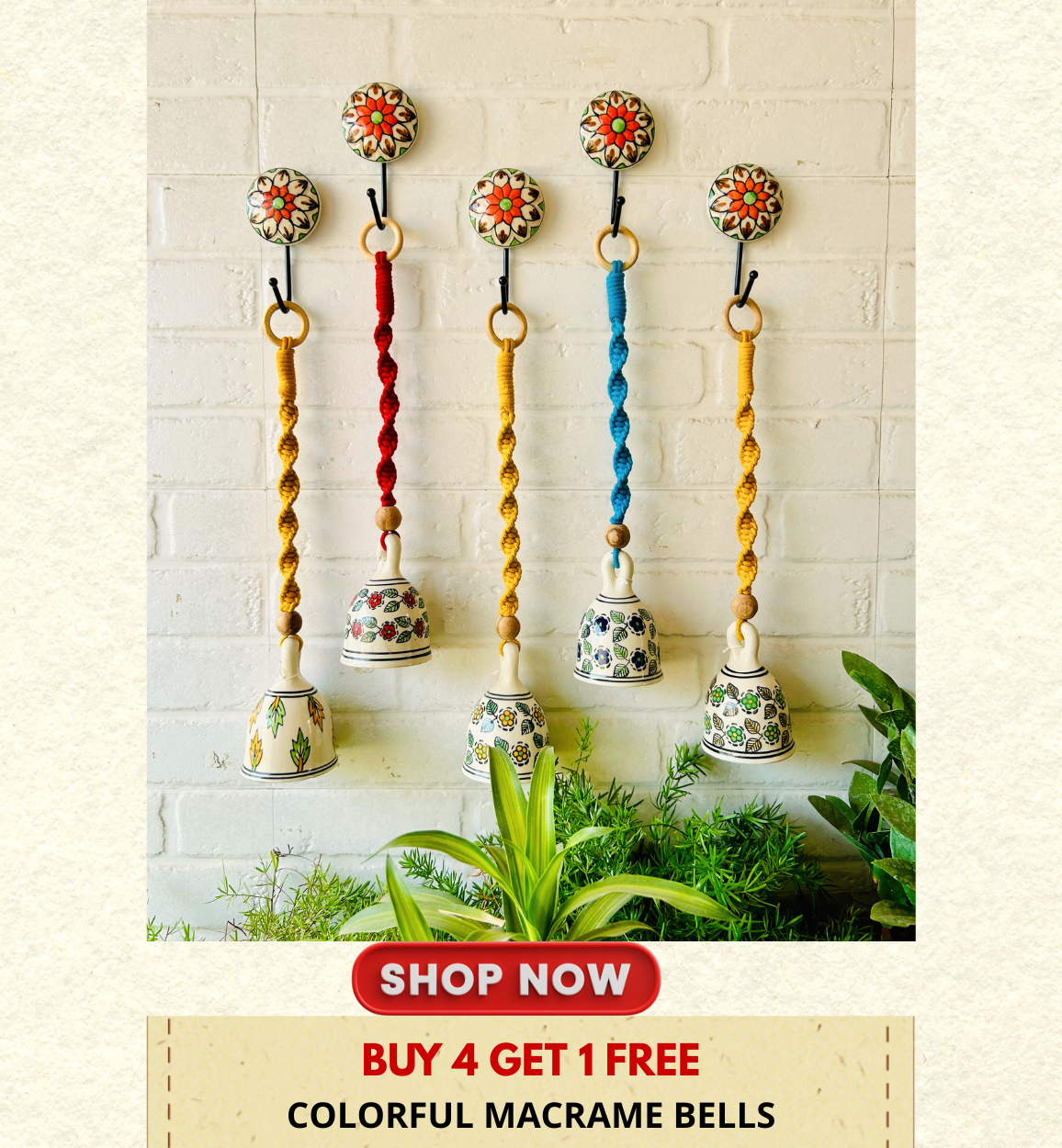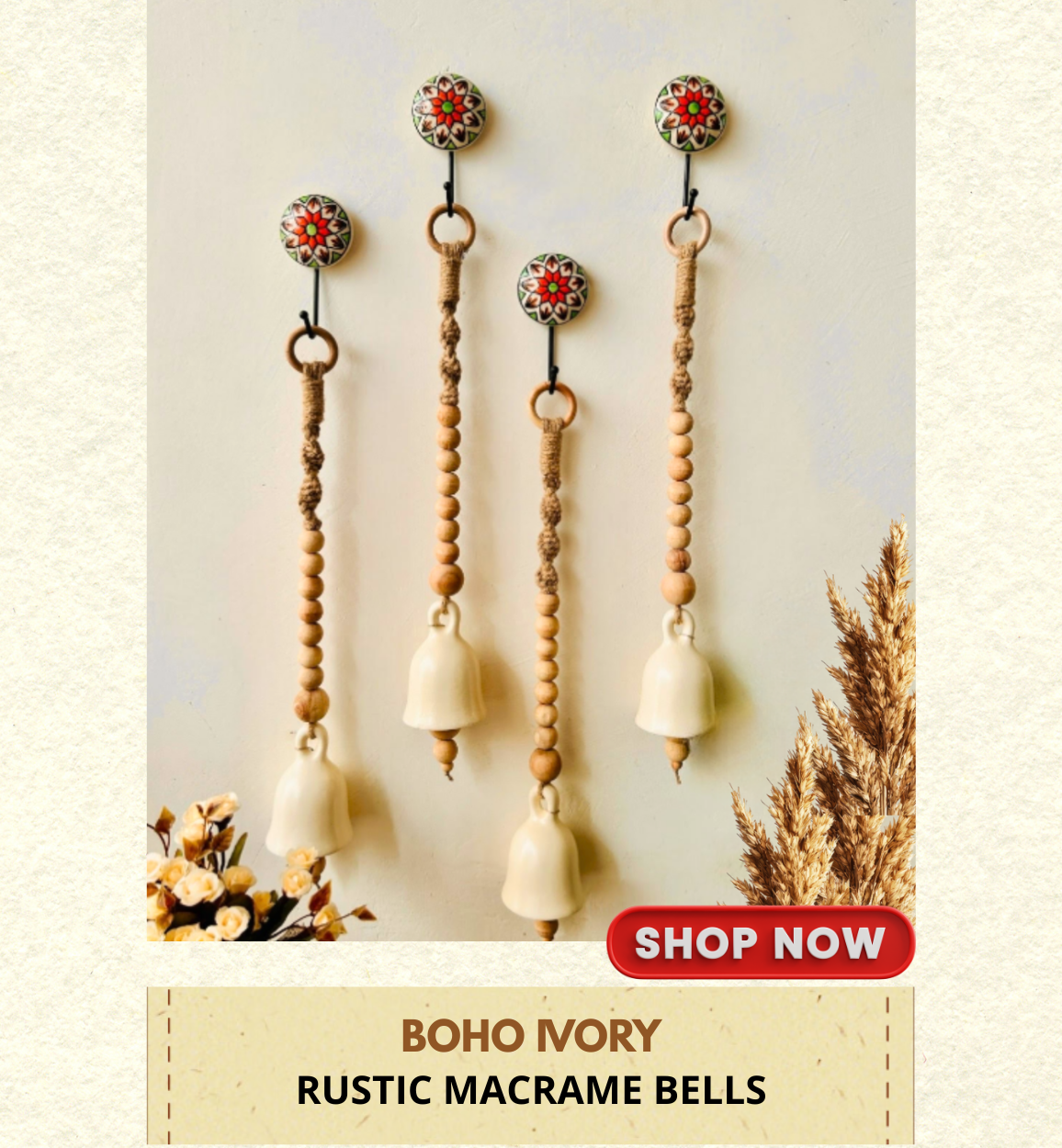 Marigold | Boho Ivory | Backdrop Ceramic Beaded Bells | With ceramic wall hooks